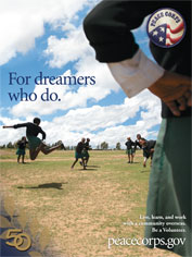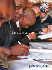 Thanks for this tribute to Peace Corps! We New York returnees had a morning moment in Times Square yesterday. Blue sky, chill air and Peace Corps promo on LED flying down the face of a building…..in a midst of an ocean of commercial messages. But it was fun to stand together in a spot known the world over with a group that has been in every corner of the globe… and celebrate and reflect. We had a moment of silence for Shriver amid the noise and haste. (I think I will do a facebook posting of a similar nature). Yay Peace COrps!