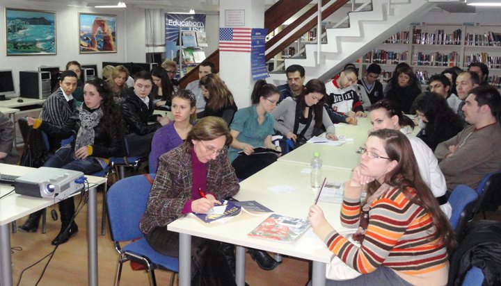 *American Corners are English-language resource centers, which provide information on America and English-language materials and programs to the public in foreign countries. There are 400 American Corners worldwide, five in Macedonia.