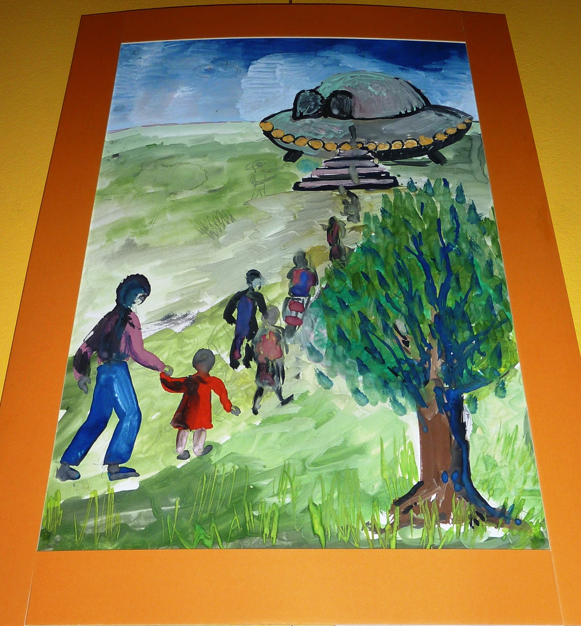 Believe it or not, the kids are 4-12! When I saw the paintings I though they were done by older kids. Excellent art ability for kids so young. Love all the colors, too.