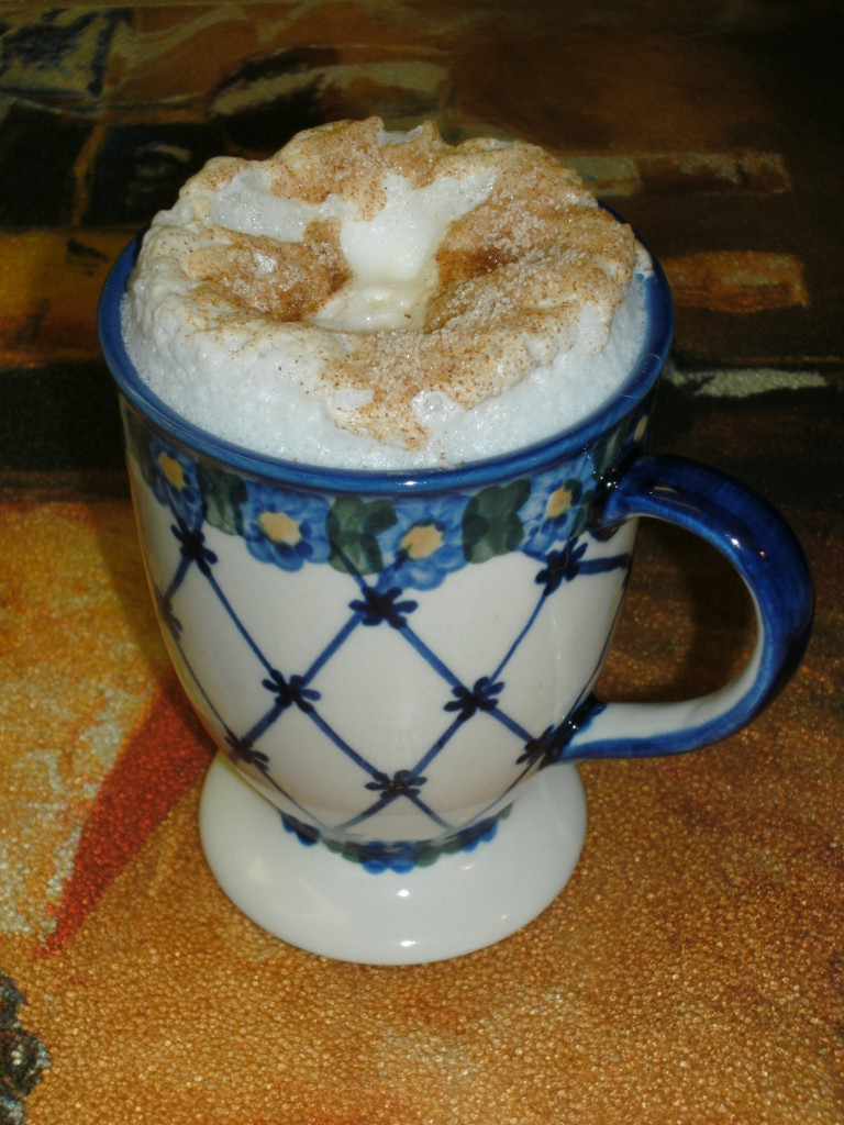 The soft and frothy foam is a result of another friend’s kindness, she bought me a great mini-blender so I can easily foam my milk each morning. Thanks, Nellie.